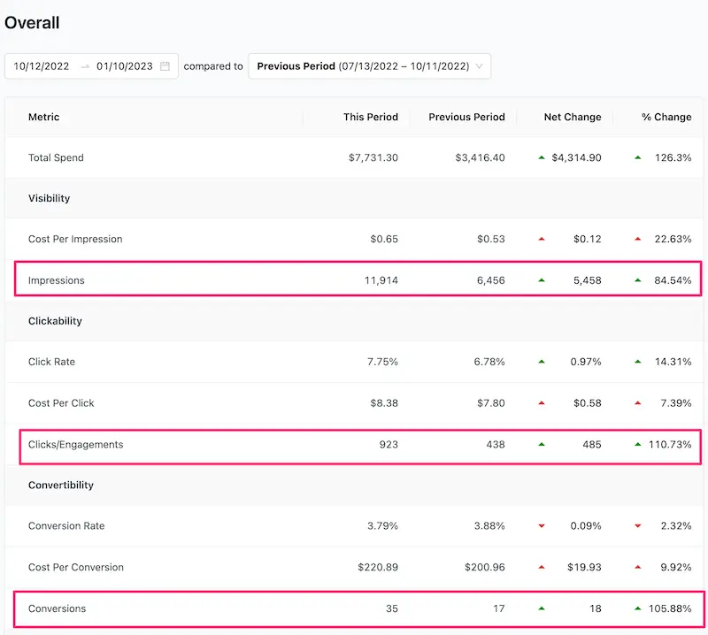 And, compared to the previous 90-day period, they saw a 84% increase in impressions, a 110% increase in clicks and 105% increase in conversions.