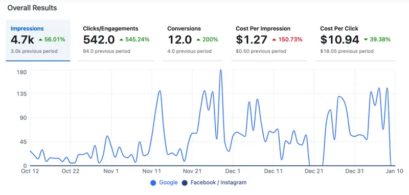 Over the last 90 days, they’ve seen thousands of impressions, hundreds of clicks and dozens of conversions.