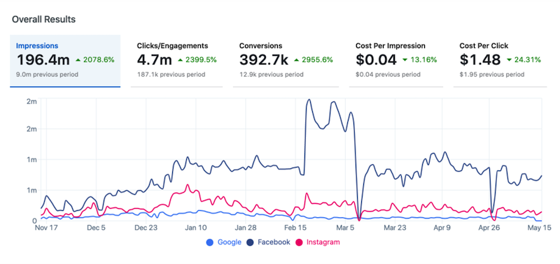 With tens of thousands of conversions and more than a million clicks and engagements, Facebook was, by far, their best advertising channel.