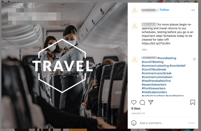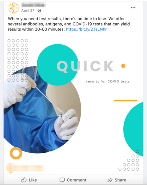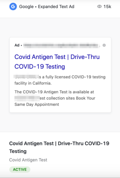 On Google, they targeted people who were actively searching for terms, like “same day COVID testing” or “curative COVID test,” through search advertising.
