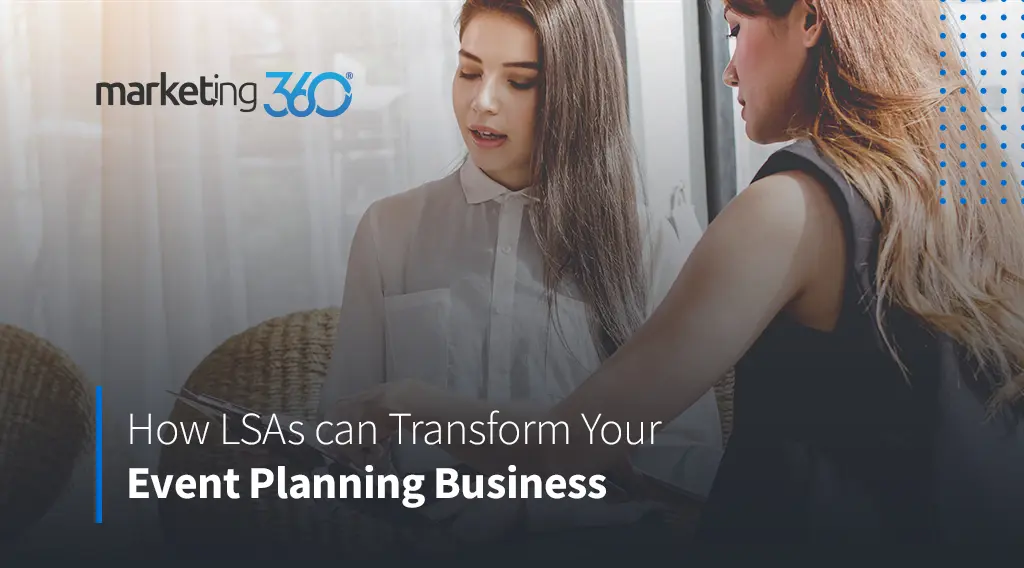 The world of event planning is all about creating unforgettable experiences. With LSAs, you can ensure your clients find you when they need you most. So why wait? Start building your LSA profile, collect those glowing reviews and let Marketing 360® help you shine. Learn more and sign up for your free trial.