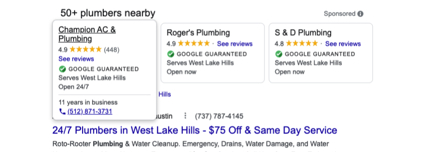 Not only does this top spot capture attention, but the Google Guaranteed badge on these ads signifies trust and can give online searchers the confidence to call and book a service.
