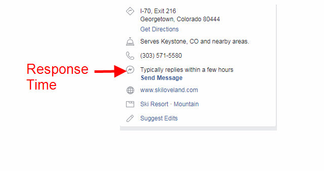 This works well because it’s an easy, low-risk way for a potential customer to reach out to you. Activate this feature and be as responsive as possible during your business hours. Note that Facebook will track how quickly you typically respond, then creates a response time notation: